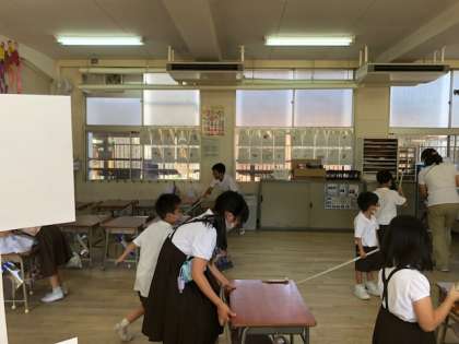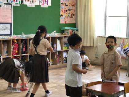 異学年交流が難しい中ではありますが、ほうきの使い方やごみの集め方など優しい笑顔で教える姿は、とても頼もしいです。