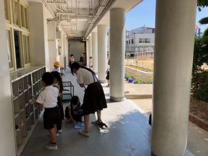 低学年のそうじを環境委員会児童が手伝いに行っています。
