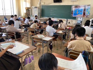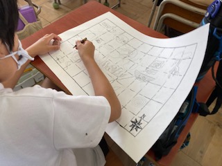 イメージを広げながら、宝物が隠されている島の地図を描いています。