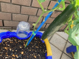 金曜日に土を盛り、肥料をやりました。今朝見てみると、立派なきゅうりができていてびっくりしていました!