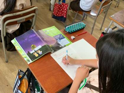 「夏の夜空」の学習に入りました。星空の写真を見て、綺麗!見たい!と写真に釘付けでした。