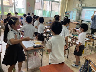 覚えたフレーズを使ってあいさつをした後、ジャンケンをしました。どんどん使っていきます。