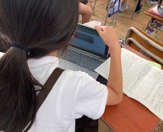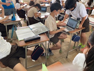 環境問題について調べわかった事を報告文にまとめています。写真やグラフ、資料などの資料も根拠を明確にするために、工夫して取り入れています。