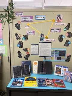 もうすぐ七夕です。星座や七夕に関する本がたくさん並んでいます。「夏の大三角」もこうすれば覚えやすいですね。