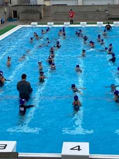 今日で2階目の水泳学習。音楽に合わせて水に慣れたり、基本の練習をしました。
