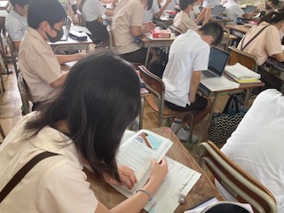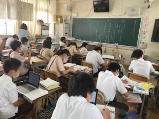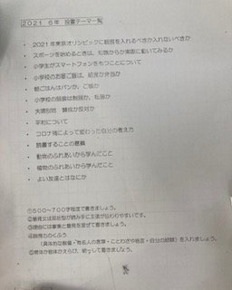 テーマを決めて、意見文を書いています。学習した構成メモ作り、説得力のある書き方などを工夫して、一人一人が500字から700字程度で書いていきます。