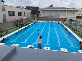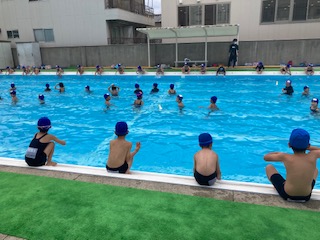 プール水泳2回目の昨日は、水の中でダンスをしたり、大きなプールの深さを知るためにぐるっと一周したりしました。真ん中が深くなっていることに気付きました。