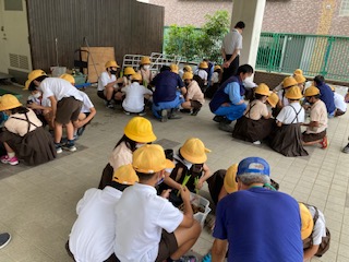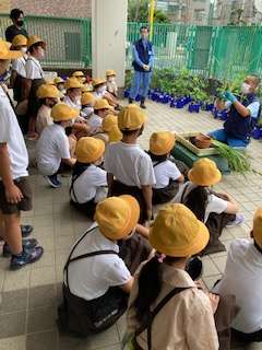 区役所、鶴見公園事務所、地域ボランティアさんたちに教えていただき、一人一鉢ずつ株分けをしました。
