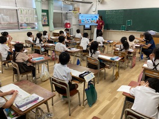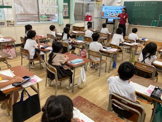赤と黒の金魚の数を比べました。どちらが何匹多いかの答えを出す時は、どんな式を立てたら良いか、考えました。さまざまな式が出てきたので、どれが正しいのか、ブロックを使ったり線を引いたりして考え、みんなで答えを導き出しました。