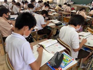 「円の面積」の単元の練習問題をやりました。円周、円周率、面積の求め方など混乱しないように気をつけて解いています。