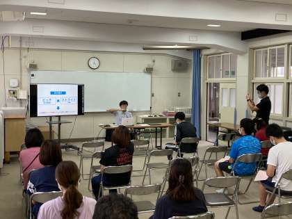 子どもたちの体力向上に向けて「biima sports」を講師に迎え、教員研修を行いました。ラダーやミニコーン、フラフープを使い、体を動かすことに夢中になる環境をつくり、自主的に運動に向かう子どもたちを増やしていきます。