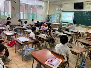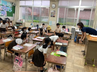 アルファベットの発音を確かめたり、ふりをつけて英語の歌を歌ったりしました。