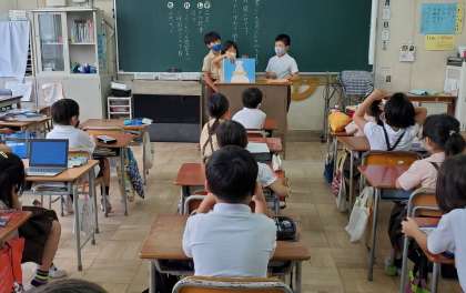 図書委員が一年生と二年生に読み聞かせをしました。