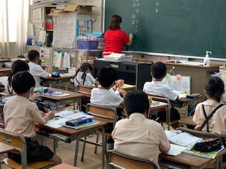 長さのところの復習をしました。教科書の練習問題や、ドリル、プリントなど自分の速さで進めていき、できたらと手をあげて丸付けをしてもらいました。