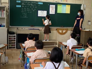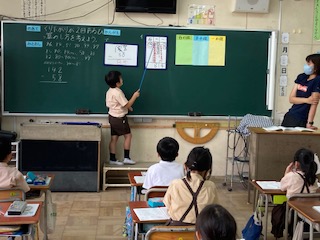くり下がりが2回ある筆算の仕方を学習しました。10の位からと100の位からくり下げるというのはどういうことか、図なども使って説明をしました。国語で学習した、順序を表す言葉、「はじめに」「次に」なども使って説明しました。