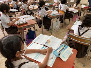 地域のお祭りに参加したことなどを思い出しながら、苦手な太鼓の練習に励む主人公の気持ちを考えるたり、自分自身のことを振り返ってみたりしました。