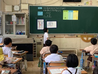 十の位が0の時に、くり下がりがある筆算の仕方を考え発表しました。ゆっくり分かりやすく友達に説明するのがとても上手になってきました。順序を表す言葉をうまく使っています。