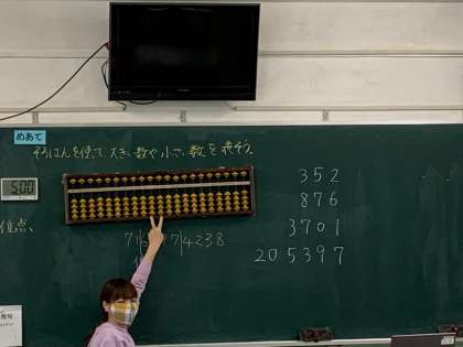 数の入れ方を学び、簡単な足し算引き算にも挑戦しました。