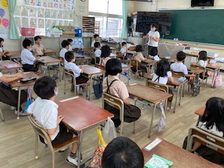 始まりのチャイムがなりました。みんな着席し、しっかり先生の話を聞いています。