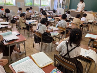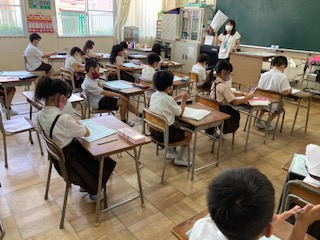 夏休みの宿題や注意事項、2学期始業式に提出するものなどの話を聞きました。