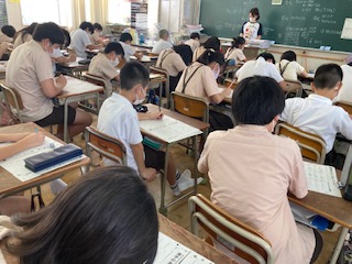 宿題の確認などの後、1学期の復習をしました。漢字など、忘れていたらすぐに調べて記入しました。