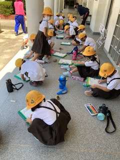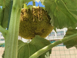 ひまわりの観察をして絵で表しました。大きくなって種もたくさんできています。