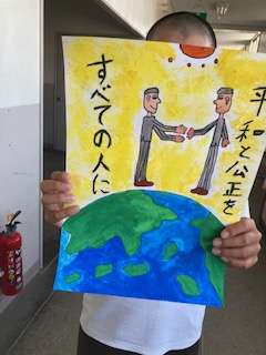 SDGsの17の目標の中から自分でテーマを選び、ポスターを作成しています。