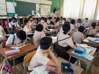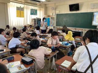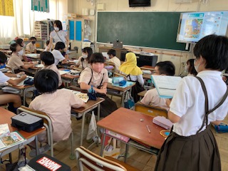 1学期の小物作りで出来上がった作品を友達どうして見合い、感想を書いて発表しました。友達の作品の良いところをたくさん見つけています。