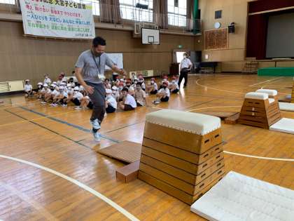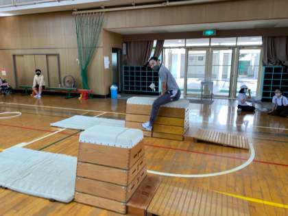 マットでの運動を生かせるよう、台上前転や抱え込みなど練習していきます。