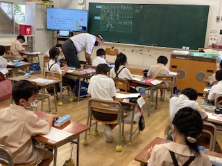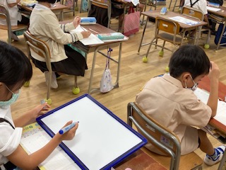 自分の考えを発表ボードに書いて、みんなの前で発表もしています。