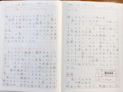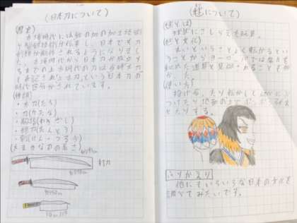 同じ読みで異なる漢字の使い分けを表にしたり道徳で学習した和の文化から思考をひろげて調べたり消しごむの仕組みや工夫について図をかいて説明したりとさまざまです。