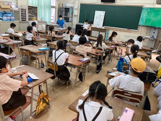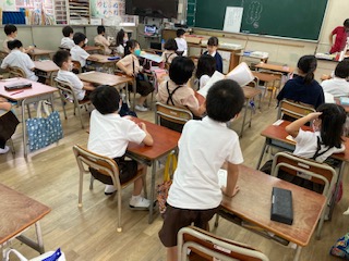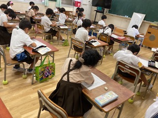 算数のプリントや答え合わせをしています。麻子会の司会もスムーズに進めています。
