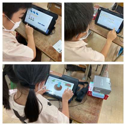 デジタルドリルを使って練習問題をしました。答えが合っていると「よくできました」のスタンプが押され、得点が入るので、一人でどんどん進めています。