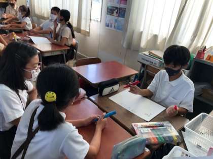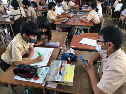「防災について考えよう」パワーポイントや動画で自然災害のおそろしさについて学びました。また、避難グッズはどのようなものを用意しておくべきなのか、グループで相談して紙に書き出し、交流しました。