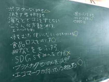 食品ロスを減らす、ごみを減らす、節水を心がけるなど多様な意見が出てきました。