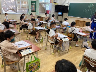 かたかなの文字を、ずいぶんたくさん習いました。「かたかなで書く言葉をたくさん見つけてノートに書いてね!」と呼びかけたら、20個以上書いて、校長室に見せに来てくれました。外国から来た言葉は、かたかなで書くことが多いことに気付きました。