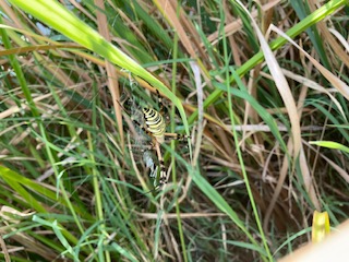 ビオトープで大きなバッタやアゲハの幼虫、珍しい蜘蛛を見つけました!