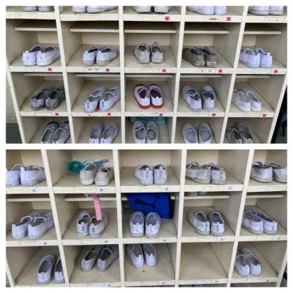 靴箱の様子です。とてもきれいに揃えて入れています。気持ちがいいですね。これが大宮小学校の良さの一つかもしれません。