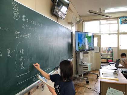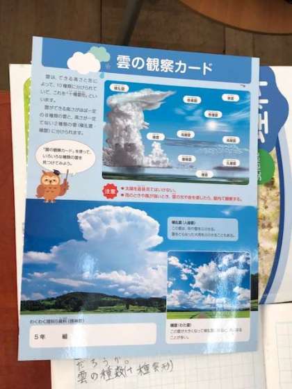 教科書の付録や資料を使いながら、約10種類の雲の特徴についてとらえることができました。