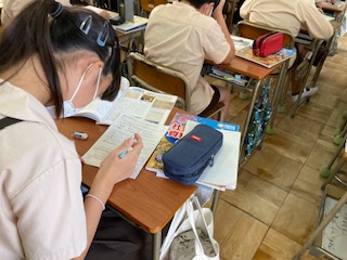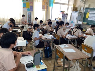 織田信長と豊臣秀吉の功績を調べ、どちらがより天下統一を進めたと思うか、資料からわかったことなどを根拠に、自分の考えを書いています。