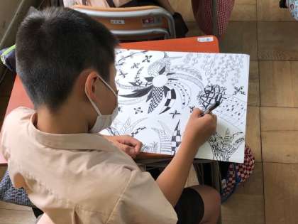 どの子どもも工夫がみられます。11月の作品展に掲示する予定です。