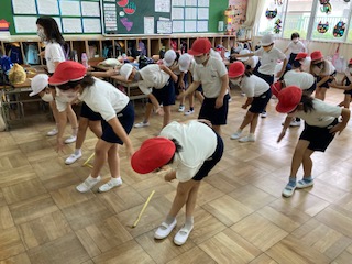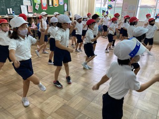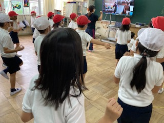 運動会の団体競技の前に、少しだけダンスをします。各教室で、オンラインで練習をしました。