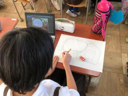 これからつくる白板のデザインを考えました。電のこを使ってつくるための下絵です。アイデアはパソコンで調べたことを参考にしています。