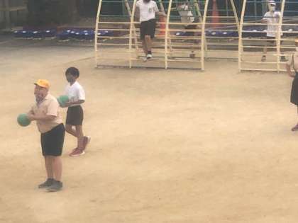 運動場に出て、ボールで遊ぶ様子が見られました。