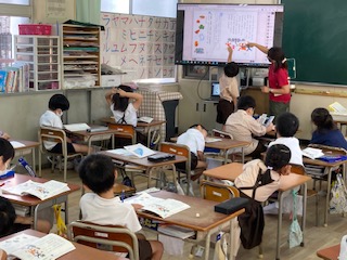 さし絵などから、どこで区切れるか考えて発表しました。子ども達は、りっちゃんの顔の変化によく着目しています。