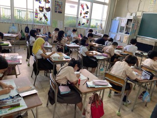 九九の表を見ながら、きまりを見つけ、ノートに書き出しました。