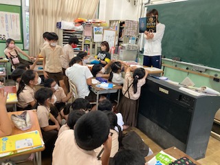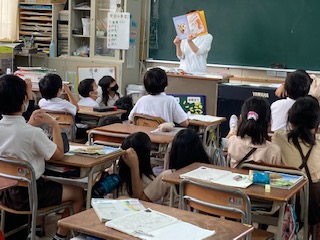 筋肉や骨についての学習に入っています。M先生が、骨について写真がたくさん載っている本を読んでくれました。終わってから、「筋肉と骨についてのクイズ」をしました。