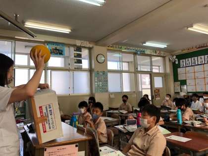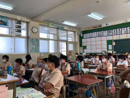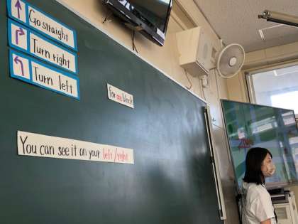 道案内のコミュニケーションについて、ゲームや歌を交えながら学習しています。