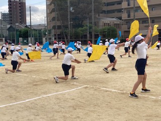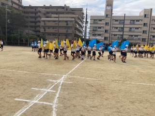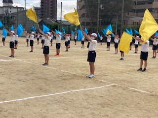 青と黄色のフラッグを振りながら突き進む勇姿は、これから困難なことがあっても自分たちの力で切り開こうとする6年生の逞しさ力強さを感じます。