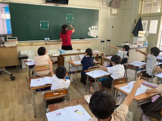 新しく「上」を習い、言葉集めをしたり練習したりしました。